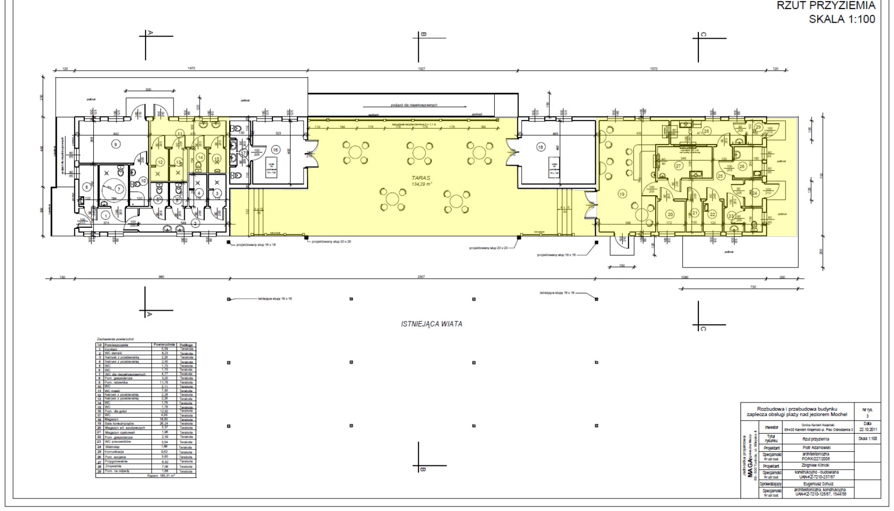 Przedmiotem przetargu jest dzierżawa lokalu użytkowego składającego się z pomieszczeń usytuowanych na parterze budynku, oznaczonych nr 11-15, 19-29 oraz jako taras – zgodnie z załącznikiem graficznym. Budynek wyposażony w instalację: elektryczną, wodno-kanalizacyjną, wentylacja mechaniczna, internet – ogólnodostępny. Ogrzewanie – brak.